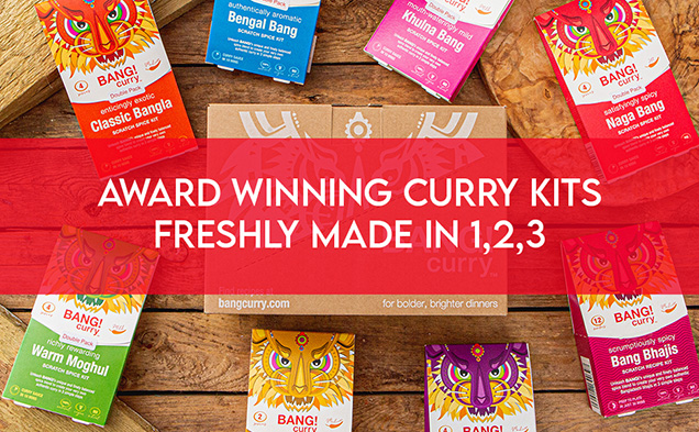 All curry kits are produced and packaged in the UK using the highest quality, sustainably sourced spices. We’re all about real cooking. No cheating. No processed foods. No timid flavours. Just a big, bold and brilliant way to make every meal go off with a BANG!