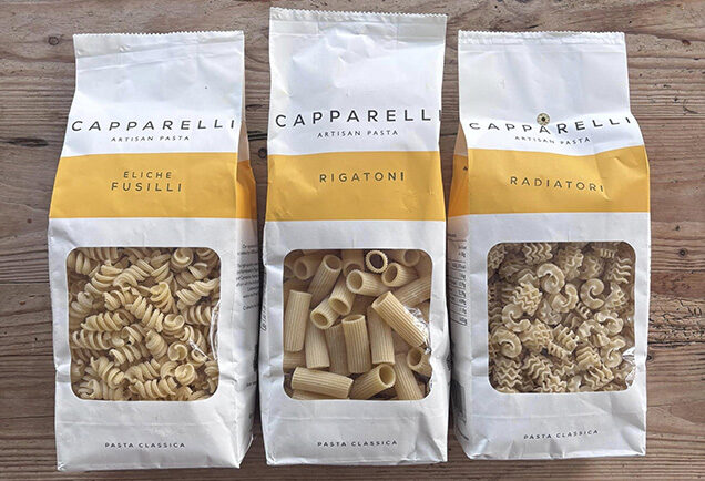 Capparelli produce artisan pasta made using traditional Italian methods, including bronze dies and a slow and low process—making the pasta slowly and drying it at low temperatures. This traditional approach ensures superior texture and flavour in our pasta. We source our flour from Italy, the UK, and Ireland, selecting only the finest ingredients. We're proud of our ancient grain varieties, and currently, we have a Special Edition pasta focusing on sustainability.
