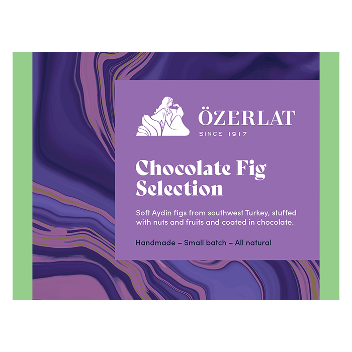 | Ingredients | Dried Aydin Figs (53%), Dark Chocolate (10%) [Cocoa Mass, Sugar, Cocoa Butter, Emulsifier: Soya Lecithin; Natural Vanilla Flavouring], White Chocolate (10%) [Sugar, Cocoa mass, Whole Milk Powder, Emulsifier: Soya Lecithin; Natural Vanilla Flavouring], Milk Chocolate (8%) [Sugar, Whole Milk Powder, Cocoa Butter, Cocoa Mass, Emulsifier: Soya Lecithin; Natural Vanilla Flavouring], Hazelnut, Malatya Apricots, Prunes, Antep Pistachio, Sultanas, Walnut, Almond, Bitter Orange Peel, Lemon Peel, Sesame Tahini. Dark Chocolate contains Cocoa solids 62% minimum; Milk Chocolate contains Cocoa Solids 34% minimum and Milk Solids 28% minimum; White Chocolate contains Cocoa Solids 33% minimum and Milk Solids 23% minimum. |